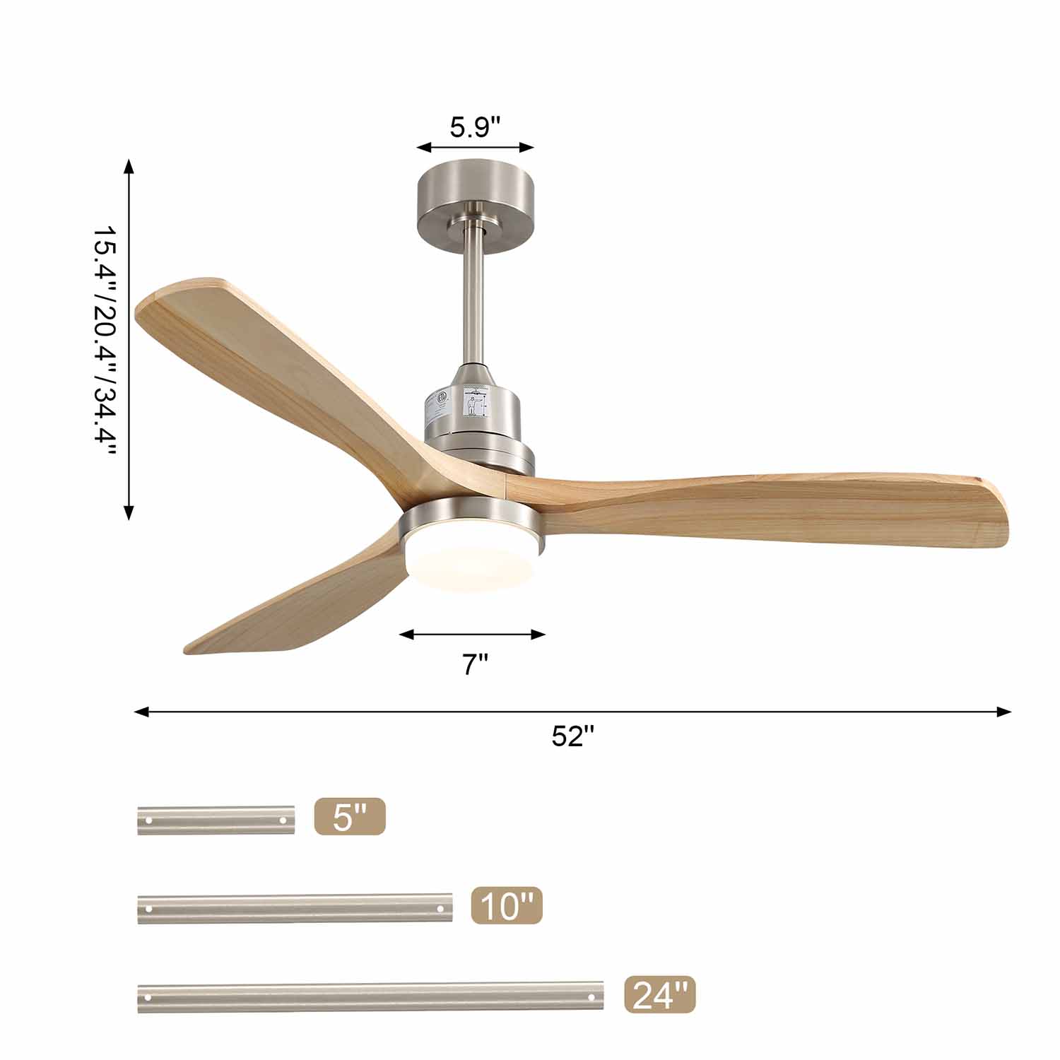 52 Inch Wood Ceiling Fan With 3 Wood Blade
