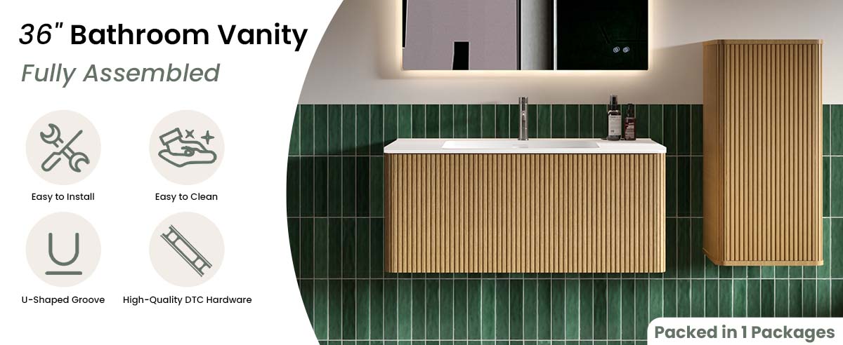 ETNA 36″ Oak Bathroom Vanity with White Sink