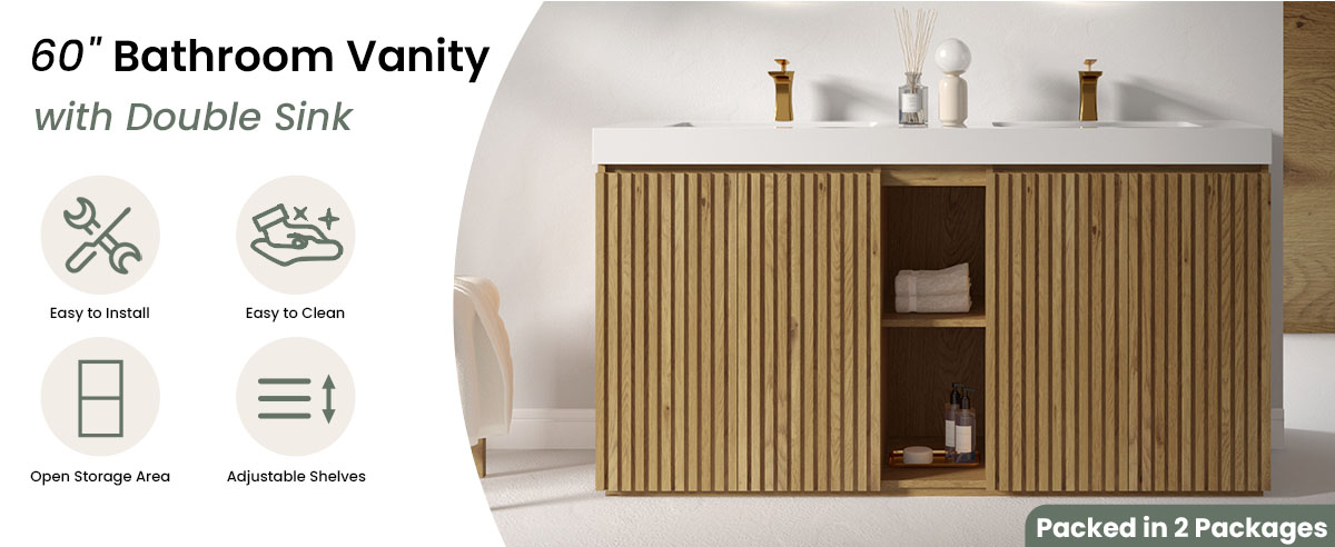 GALAN 60″Knotty Oak Bathroom Vanity