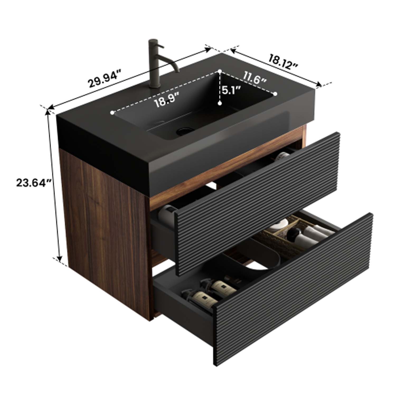 GRACE 30″ Black Bathroom Vanity with Sink