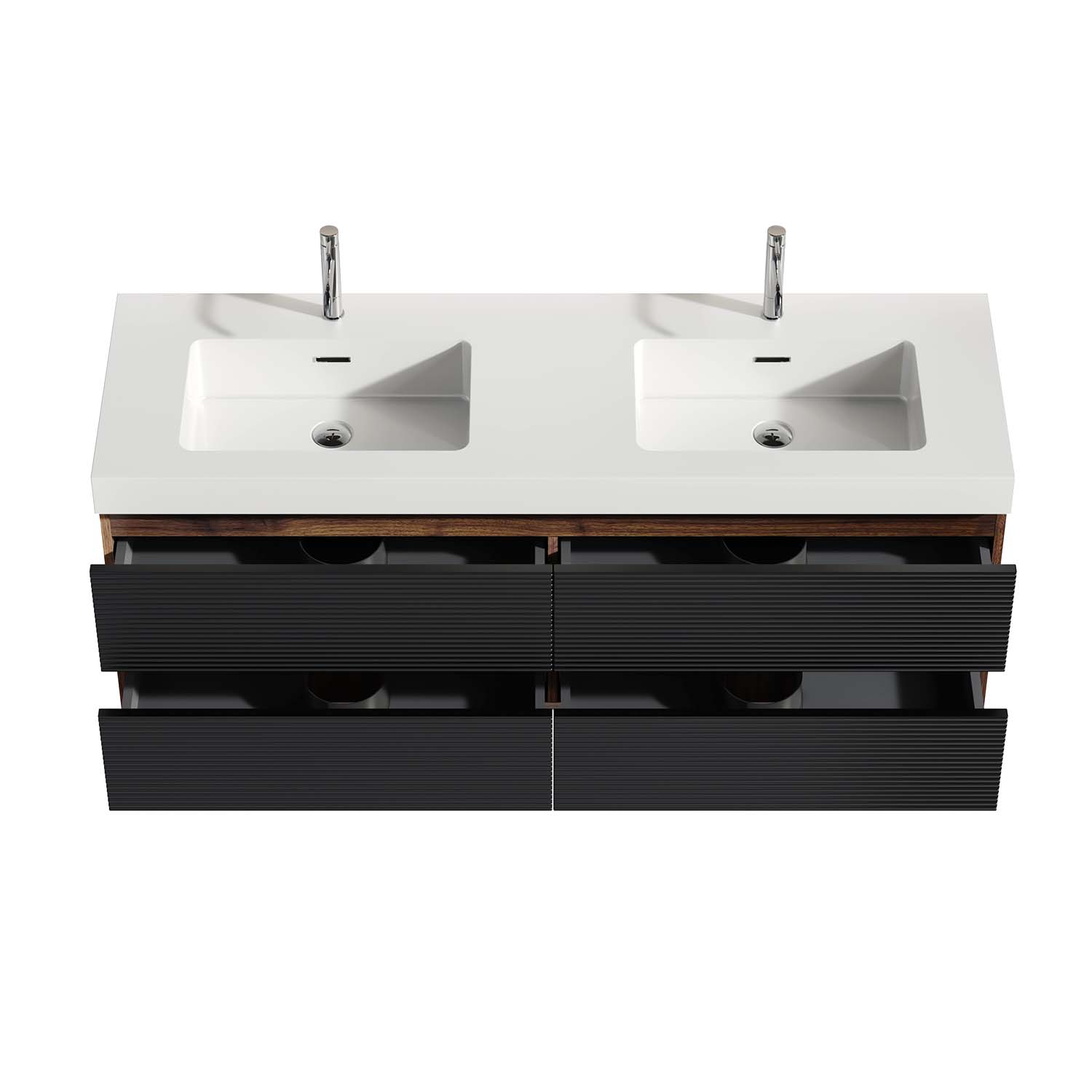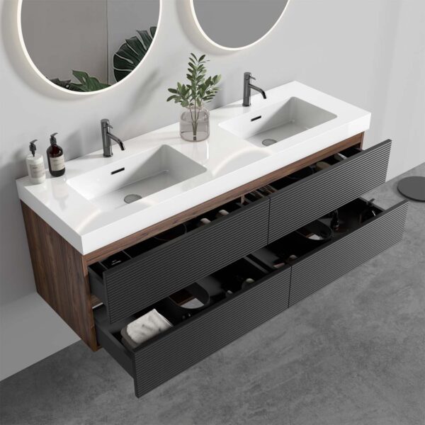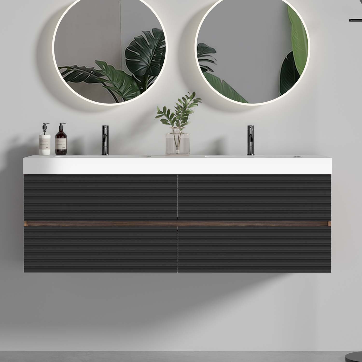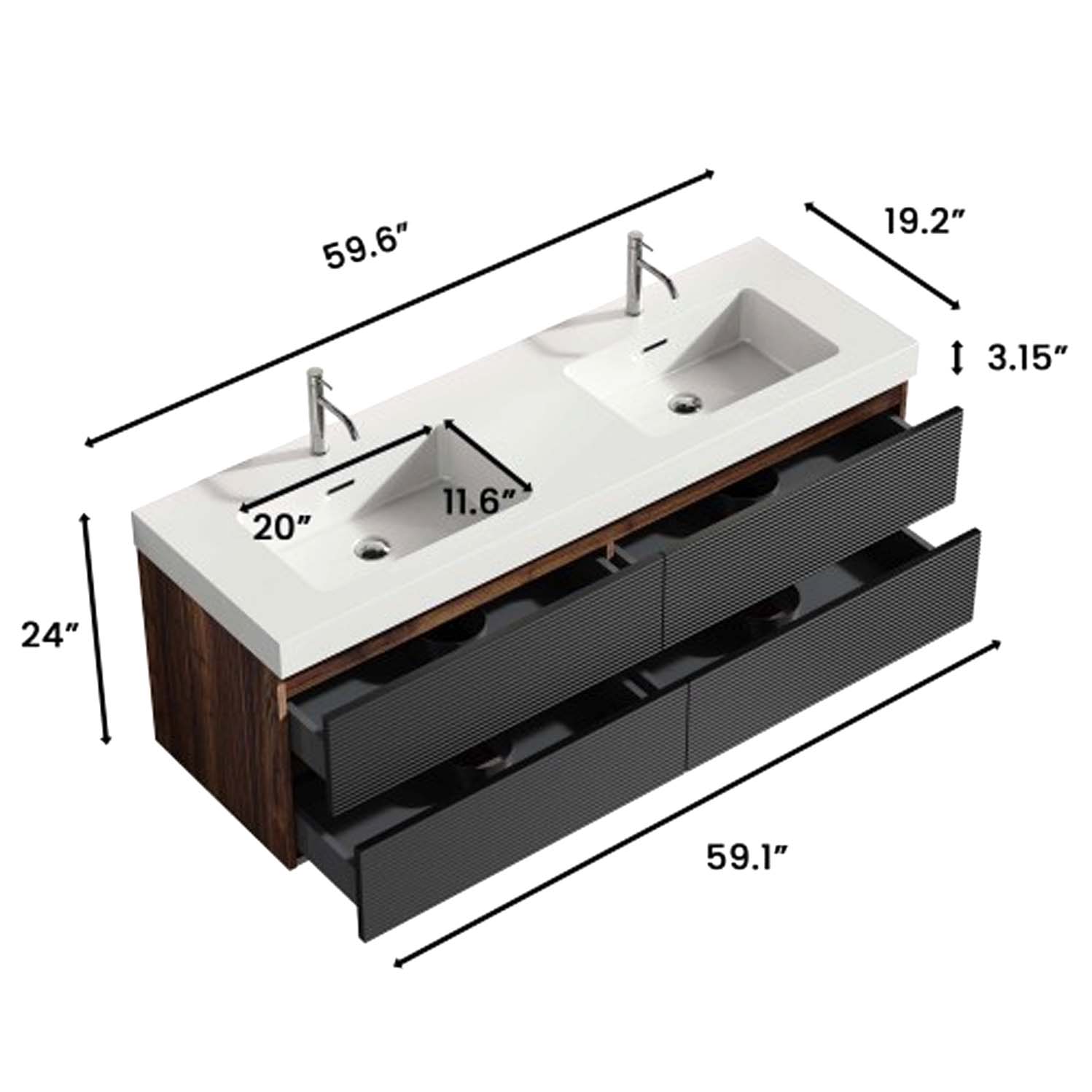 Modern Wall-Mounted Bathroom Vanity • Double Sinks & 4 Drawers
